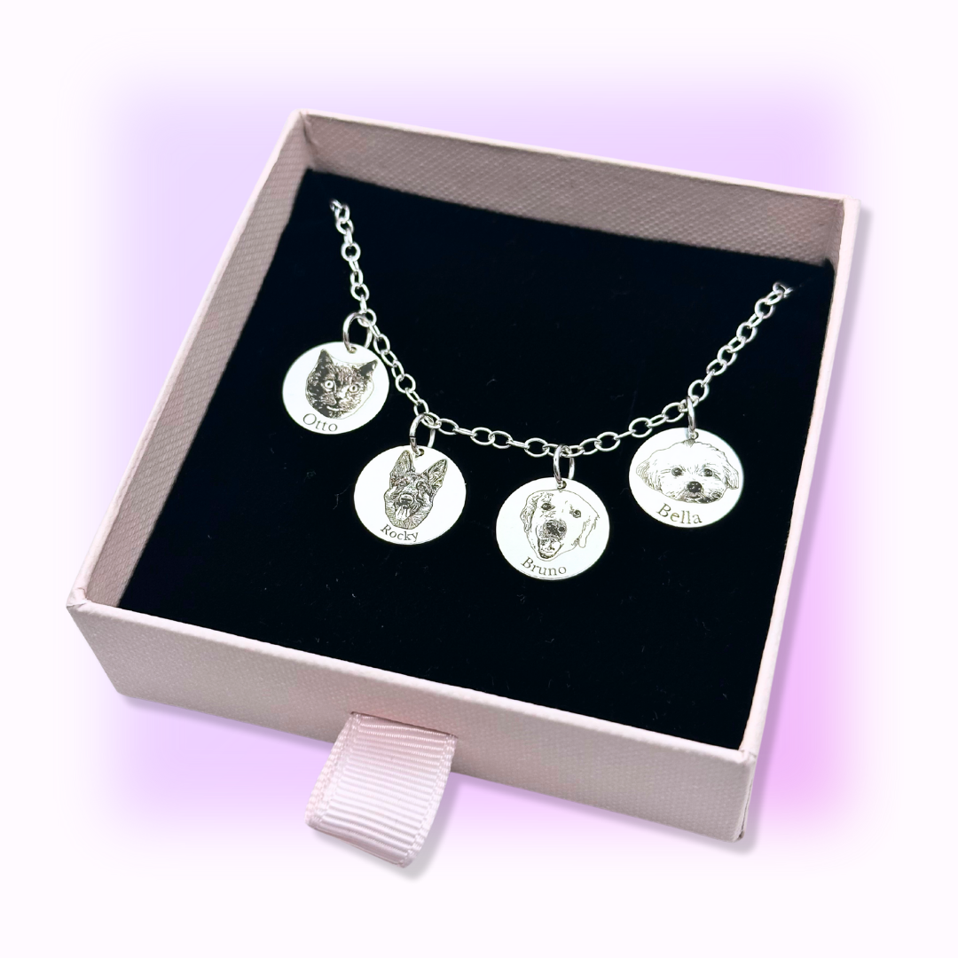 Descoperă eleganța personalizată cu bijuteriile noastre din argint 925, gravate cu fața animăluțului tău.